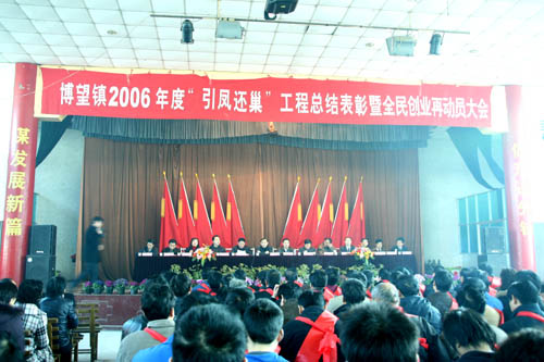 2007年2月26日上午9時(shí),博望鎮(zhèn)2006年度“引鳳還巢”工程總結(jié)表彰和全民創(chuàng)業(yè)再動(dòng)員大會(huì)在博望文體中心隆重舉行,當(dāng)涂縣縣長(zhǎng)操隆山、縣委常委、博望鎮(zhèn)黨委書記張清、鎮(zhèn)長(zhǎng)劉國(guó)寶等出席了大會(huì)并作了重要講話。會(huì)議對(duì)2006年度“引鳳還巢”和全民創(chuàng)業(yè)兩大工程中涌現(xiàn)出的各類先進(jìn)集體、先進(jìn)個(gè)人予以了表彰并對(duì)2007年的工作進(jìn)行了全部的部署。