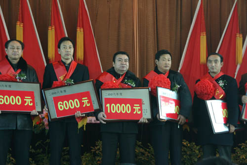 我公司獲得了“納稅大戶”(獎(jiǎng)金10000元)和“品牌與科技創(chuàng)新先進(jìn)企業(yè)”(獎(jiǎng)金2000元)兩項(xiàng)大獎(jiǎng),我司青島辦事處經(jīng)理?xiàng)钅緜€(gè)人榮獲了“十佳推銷員”稱號(hào)。